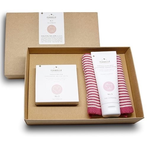 Schönes Geschenkset mit 1 Baumwollwaschlappen, 1 Handcrème 75ml, Seifenherz 100g